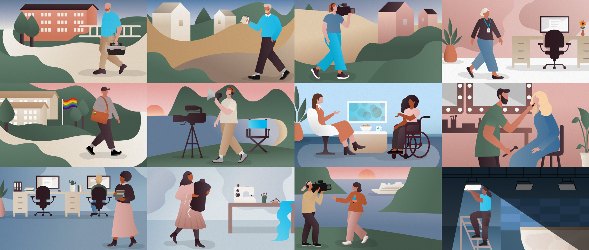 NTL’s slagord «Sammen om et bedre fellesskap» var inspirasjonen bak illustrasjonene som representerer NTL’s verdier —samhold, mangfold og ekstrovert varme. Etter god mottakelse av nylansert nettside og oppusset designprofil, ønsket NTL å synliggjøre flere illustrasjoner i samme stil gjennom ulike digitale plattformer og markedsmateriell.
